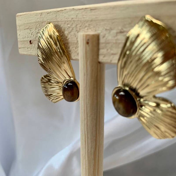 Boucle d'oreille en acier inoxydable et en œil du tigre