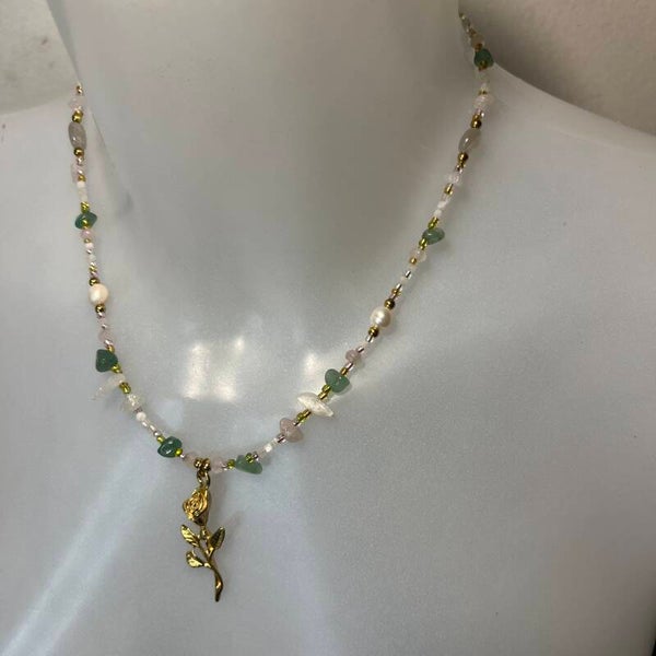En portant ce collier, tu te sens plus en phase avec ta féminité et ton essence intérieure. Ce bijou est un symbole de douceur, de force et de beauté, encourageant l'épanouissement personnel et l'amour de soi.
